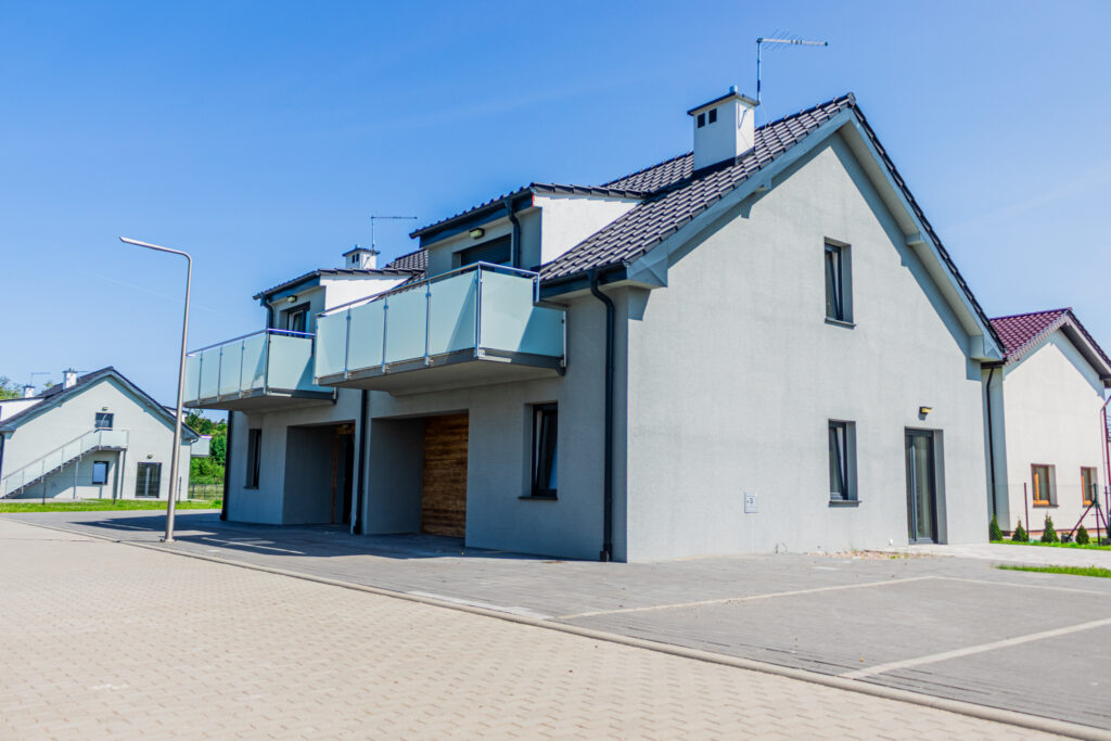Domy w zabudowie bliźniaczej to propozycja dla osób szukających komfortu domu jednorodzinnego w nowoczesnym, kompaktowym wydaniu. Domy ogrzewane piecem gazowym dwufunkcyjnym. Powstało 14 takich budynków: