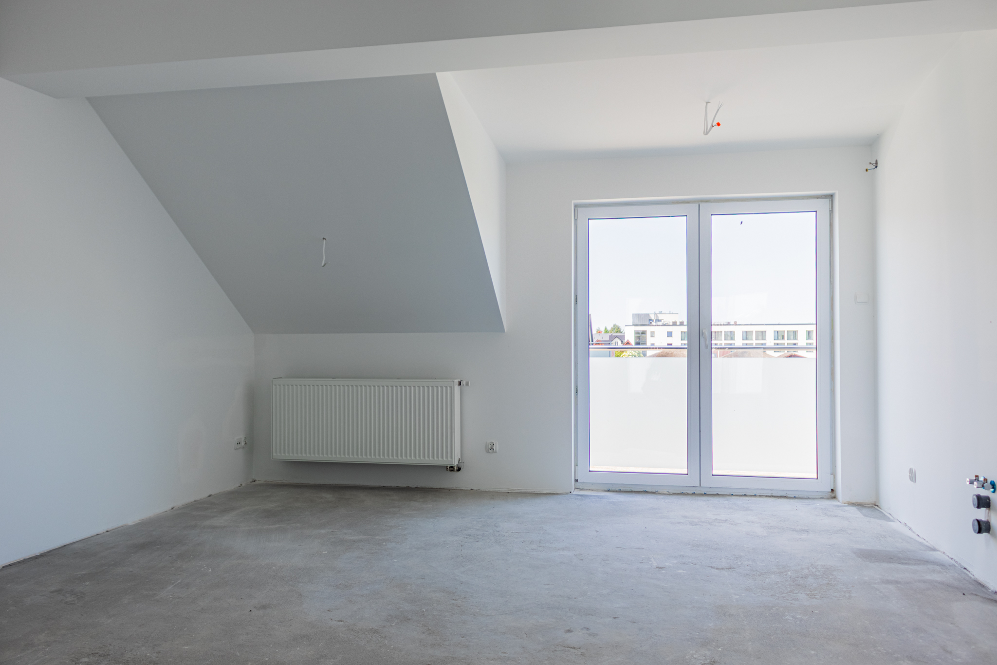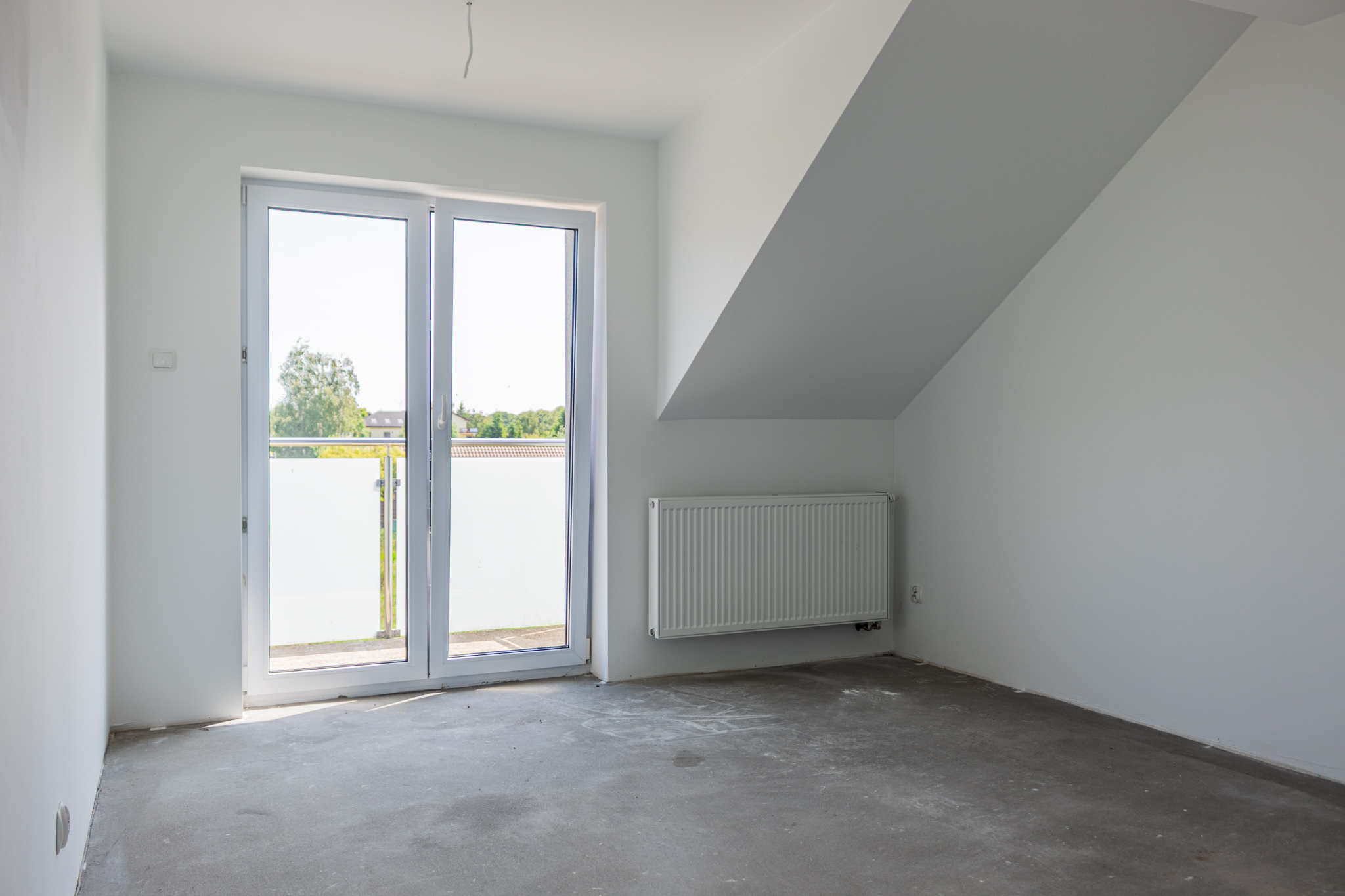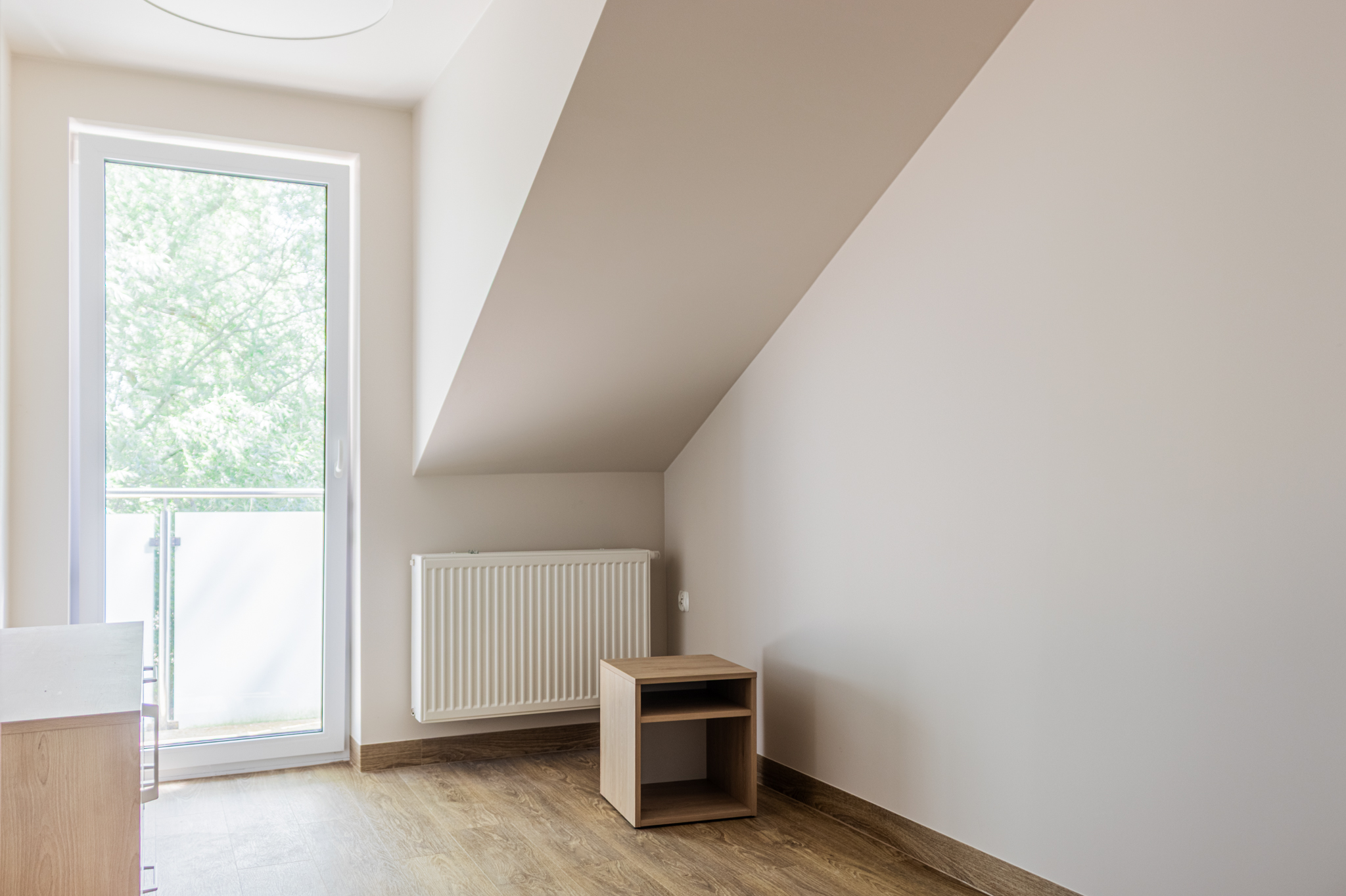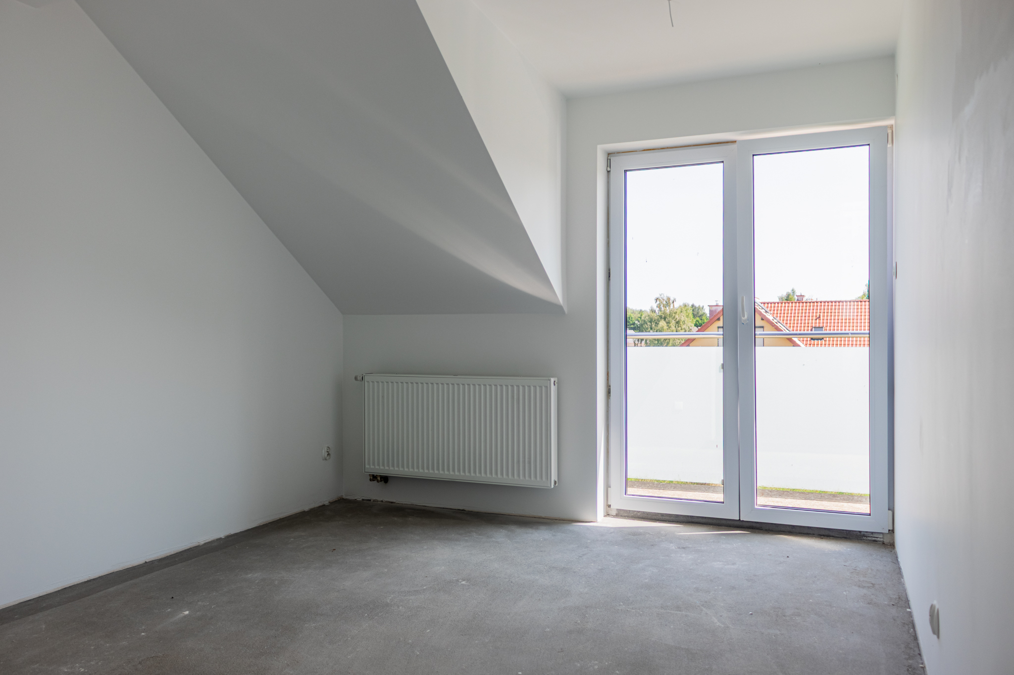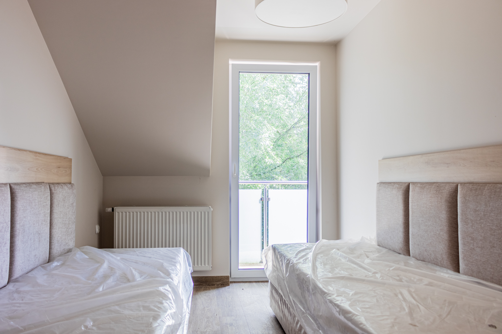 dwa dodatkowe pokoje (np. sypialnie) z wyjściem na wspólny balkon
