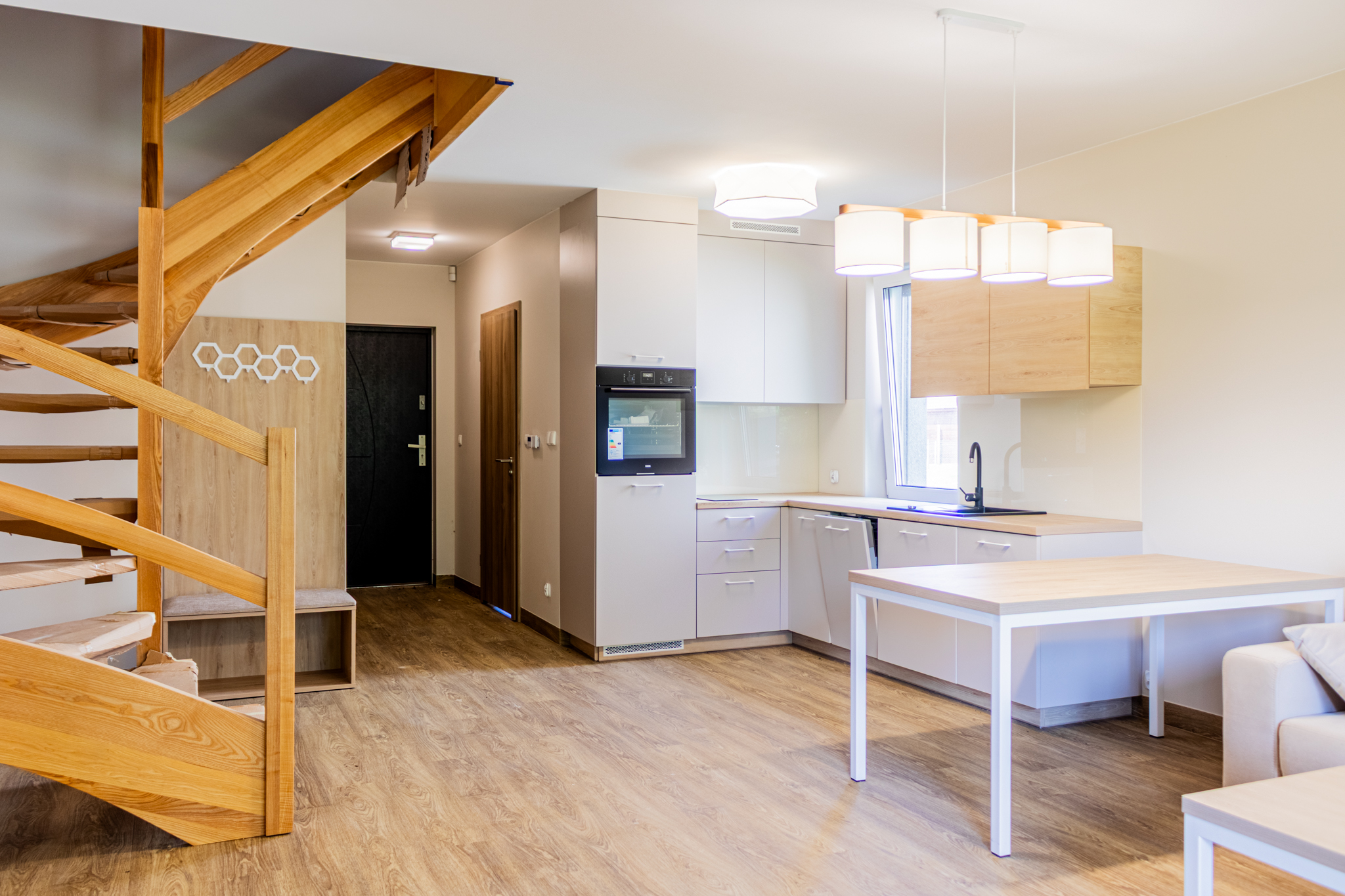 przestronna kuchnia połączona z jadalnią