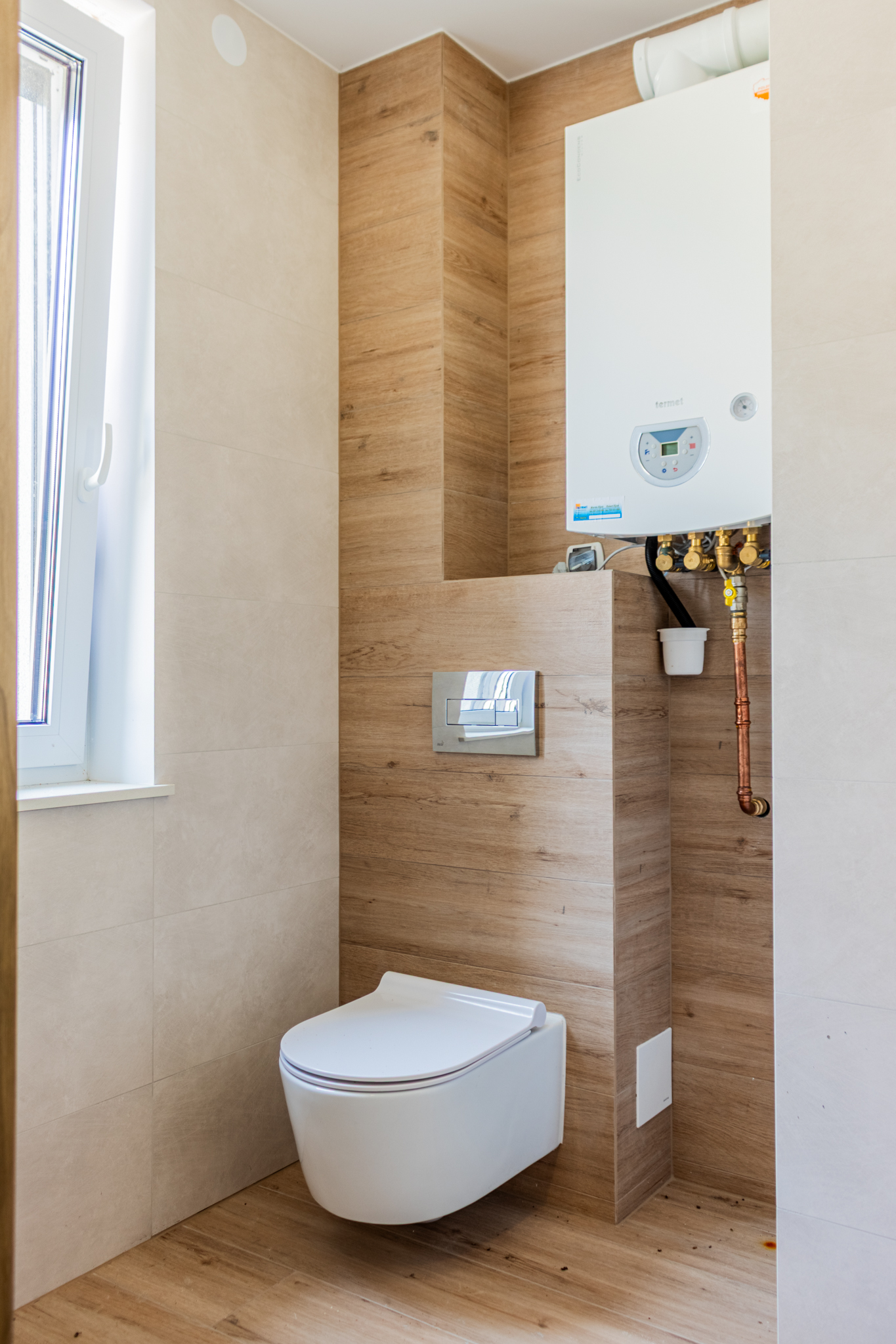 Domy ogrzewane są piecami gazowymi dwufunkcyjnymi.